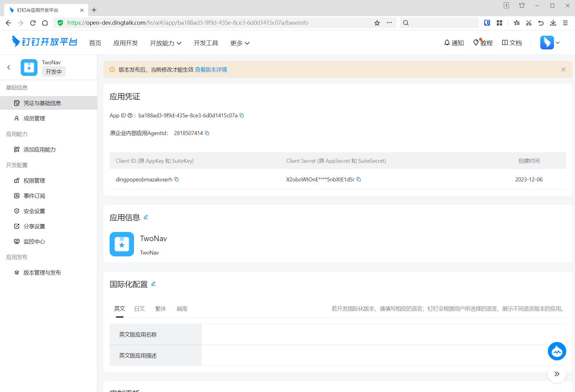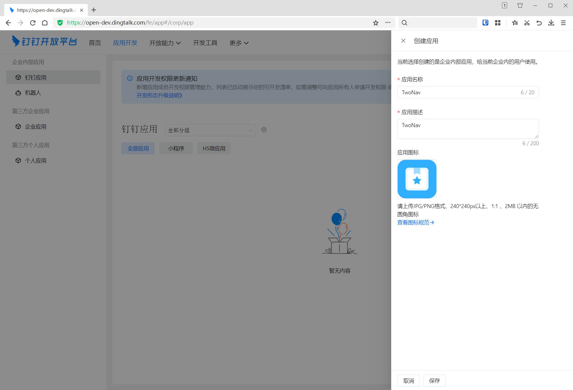 TwoNav - 申请钉钉登录接口