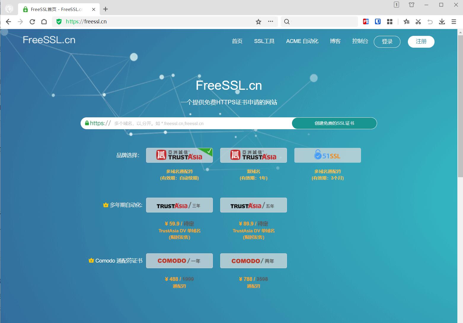 使用浏览器访问 freessl.cn 官网长这样 ↓