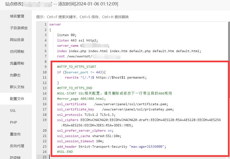 如上图, 分2段, 上面的是强制HTTPS 作用是HTTP访问是跳转到HTTPS